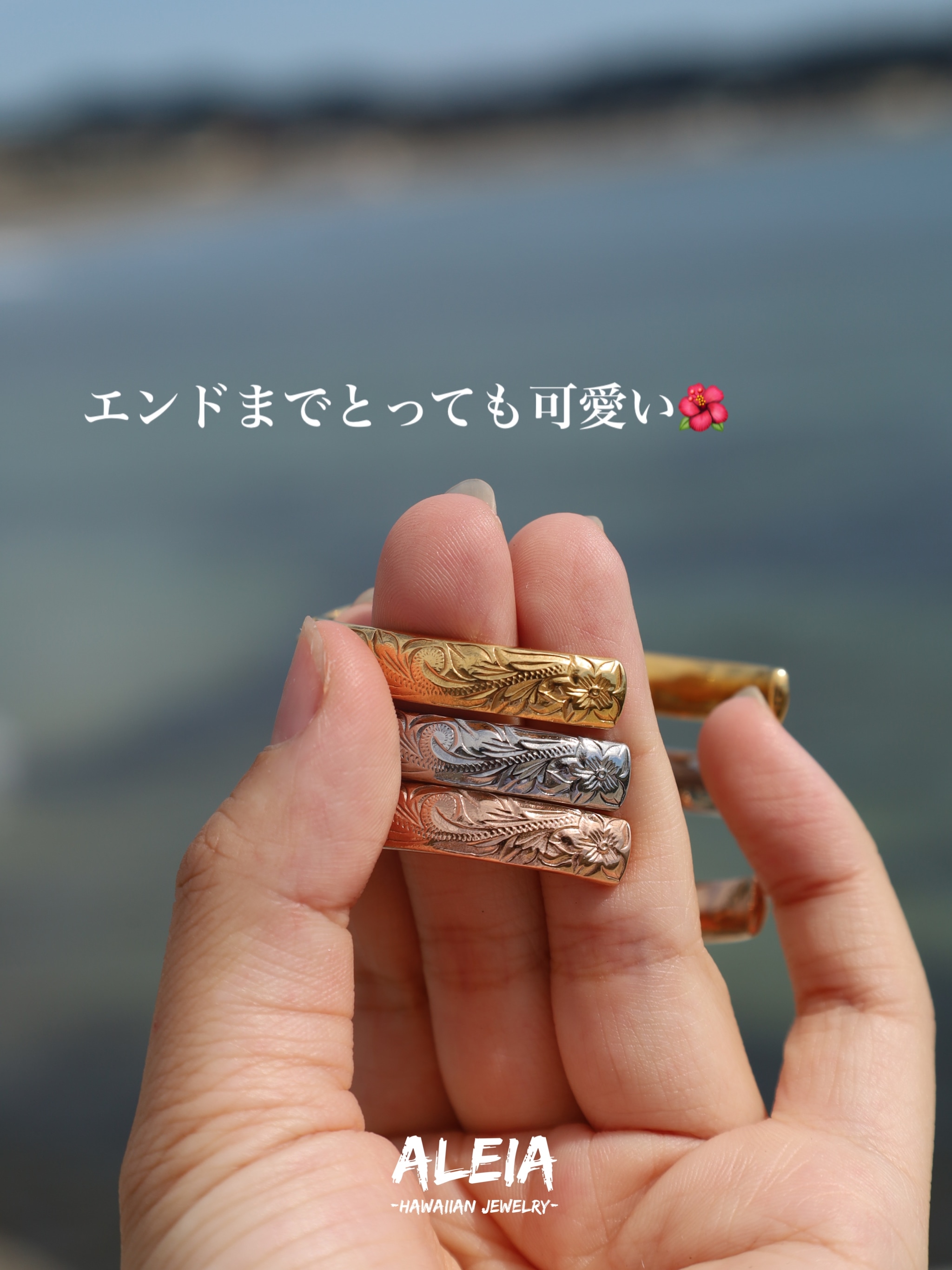 バングルのエンドには両サイドにプルメリアを彫りました🌺