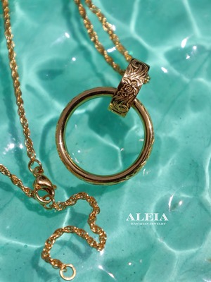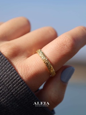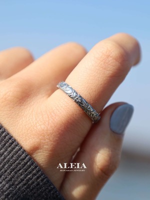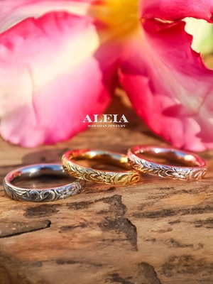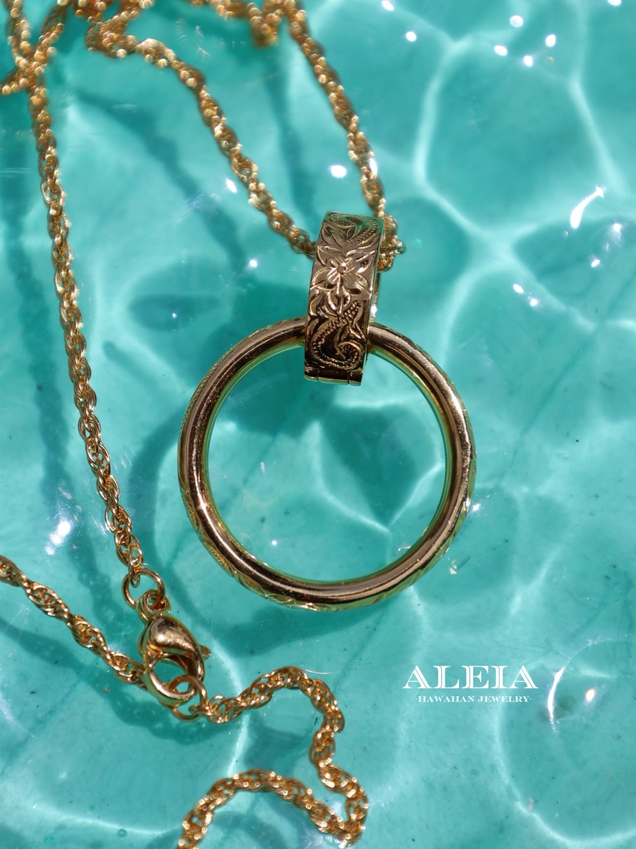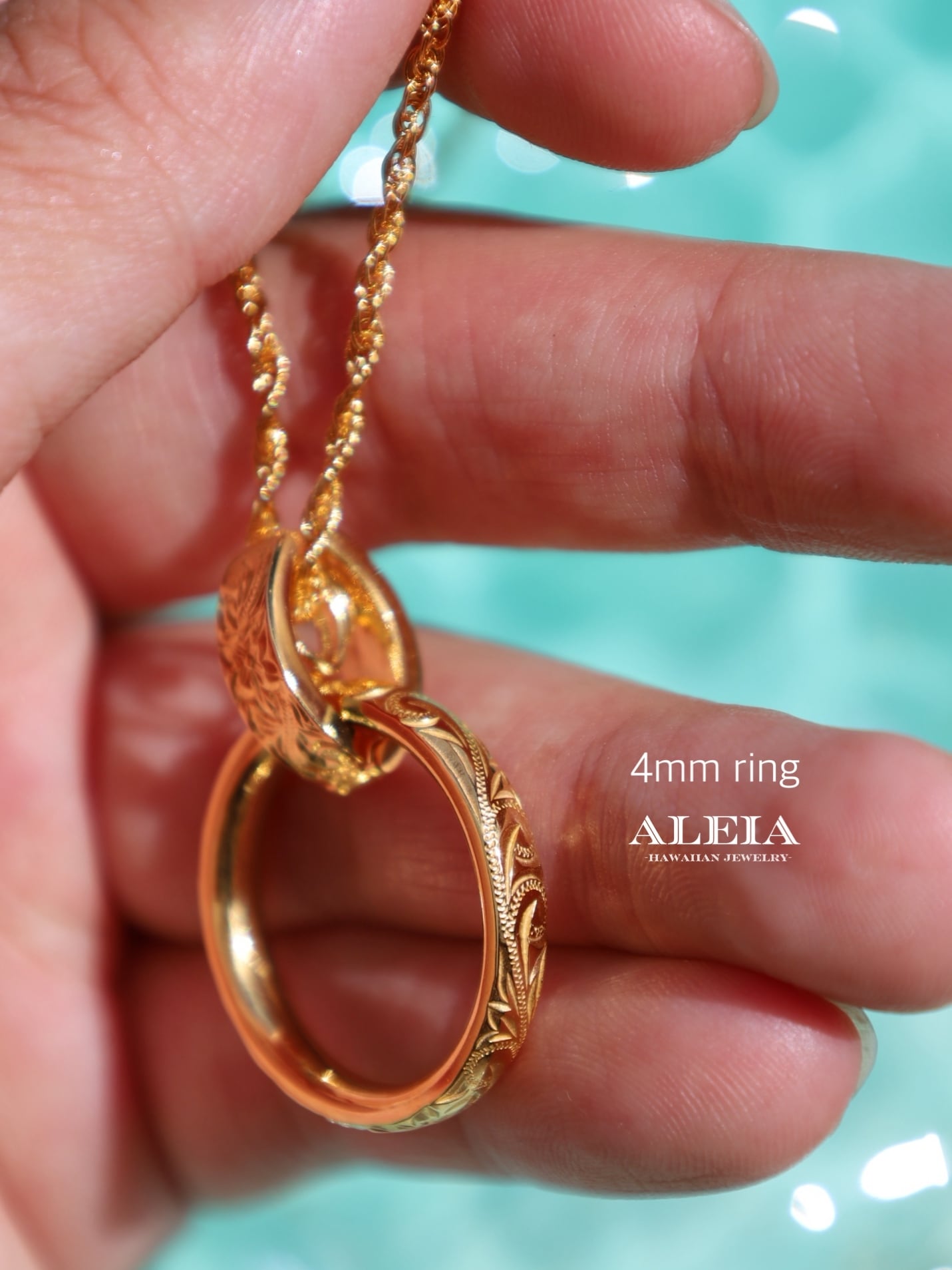 ハワイの波模様を刻んだ4mmリングが胸元でさりげなく輝きます。