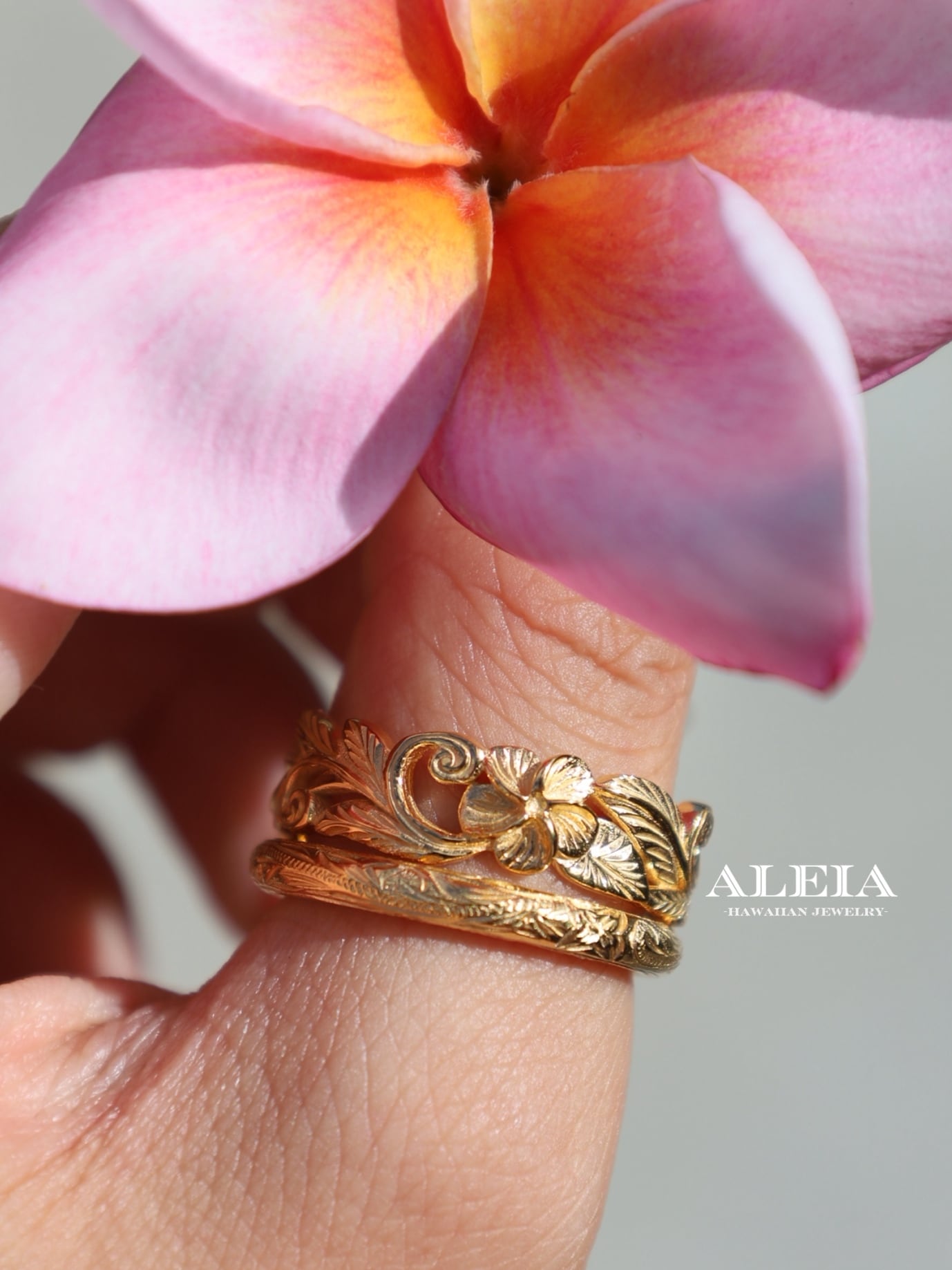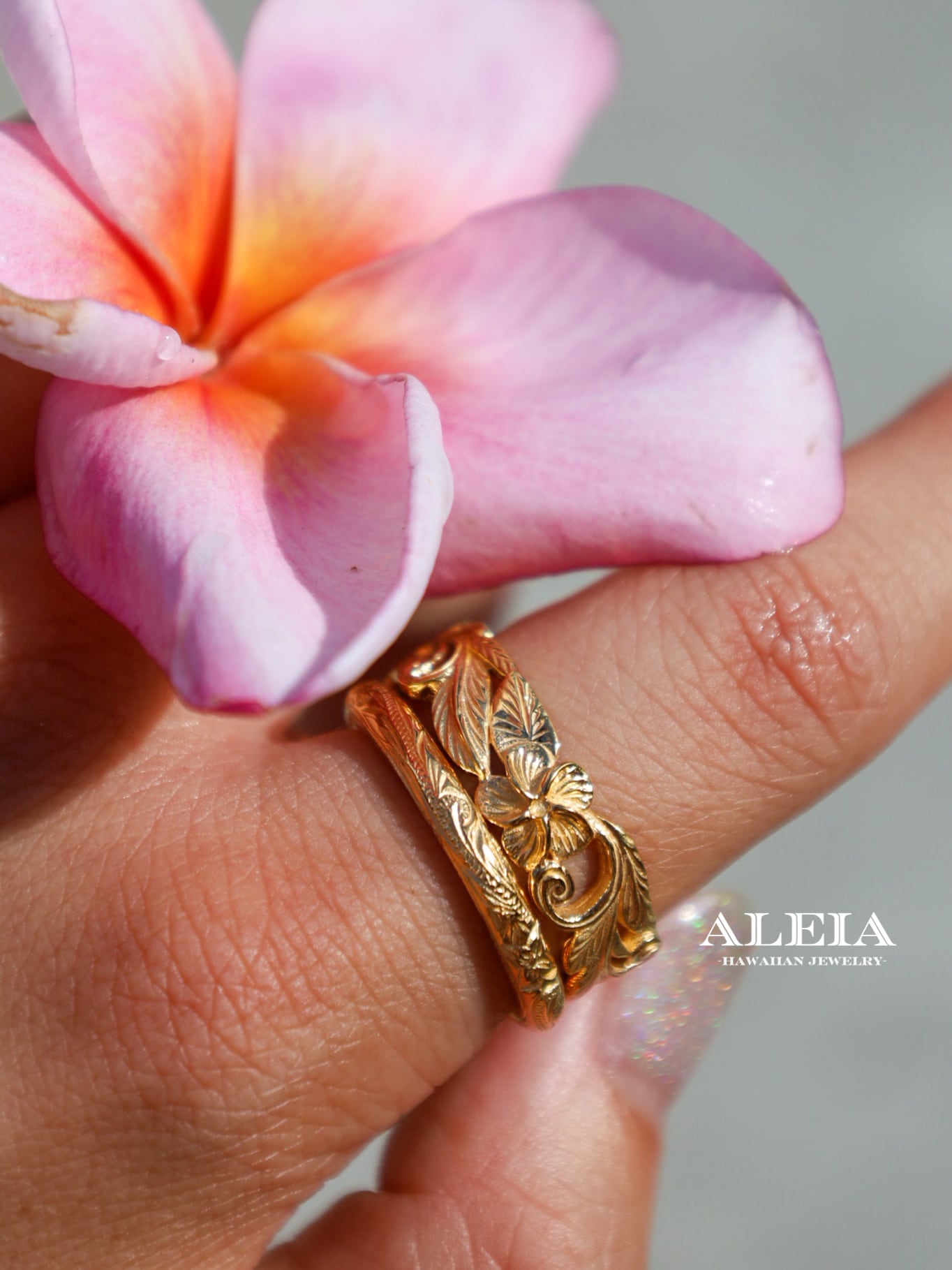 華やかに重ねて楽しむ、ハワイアンジュエリーの2リングセット✨