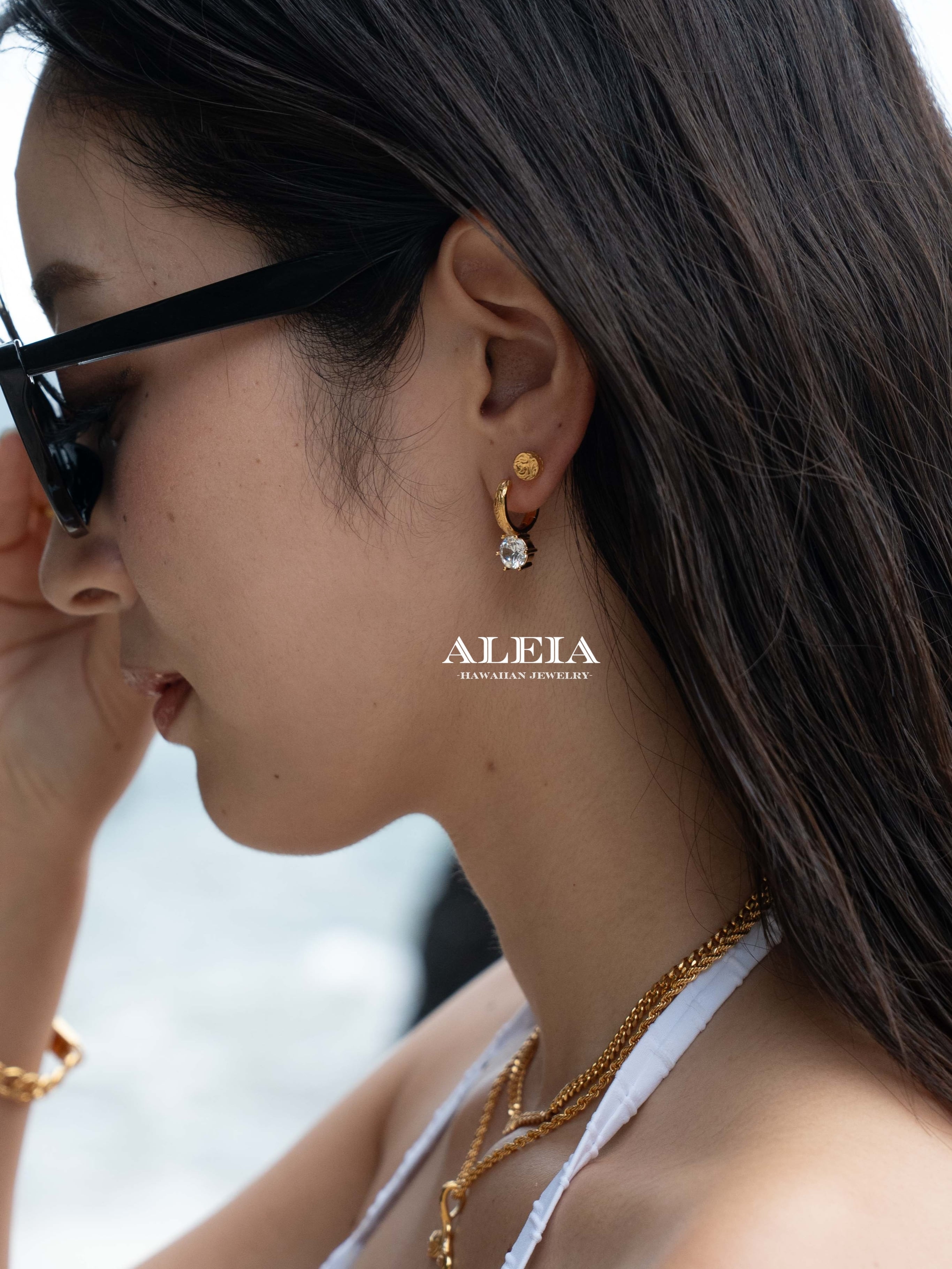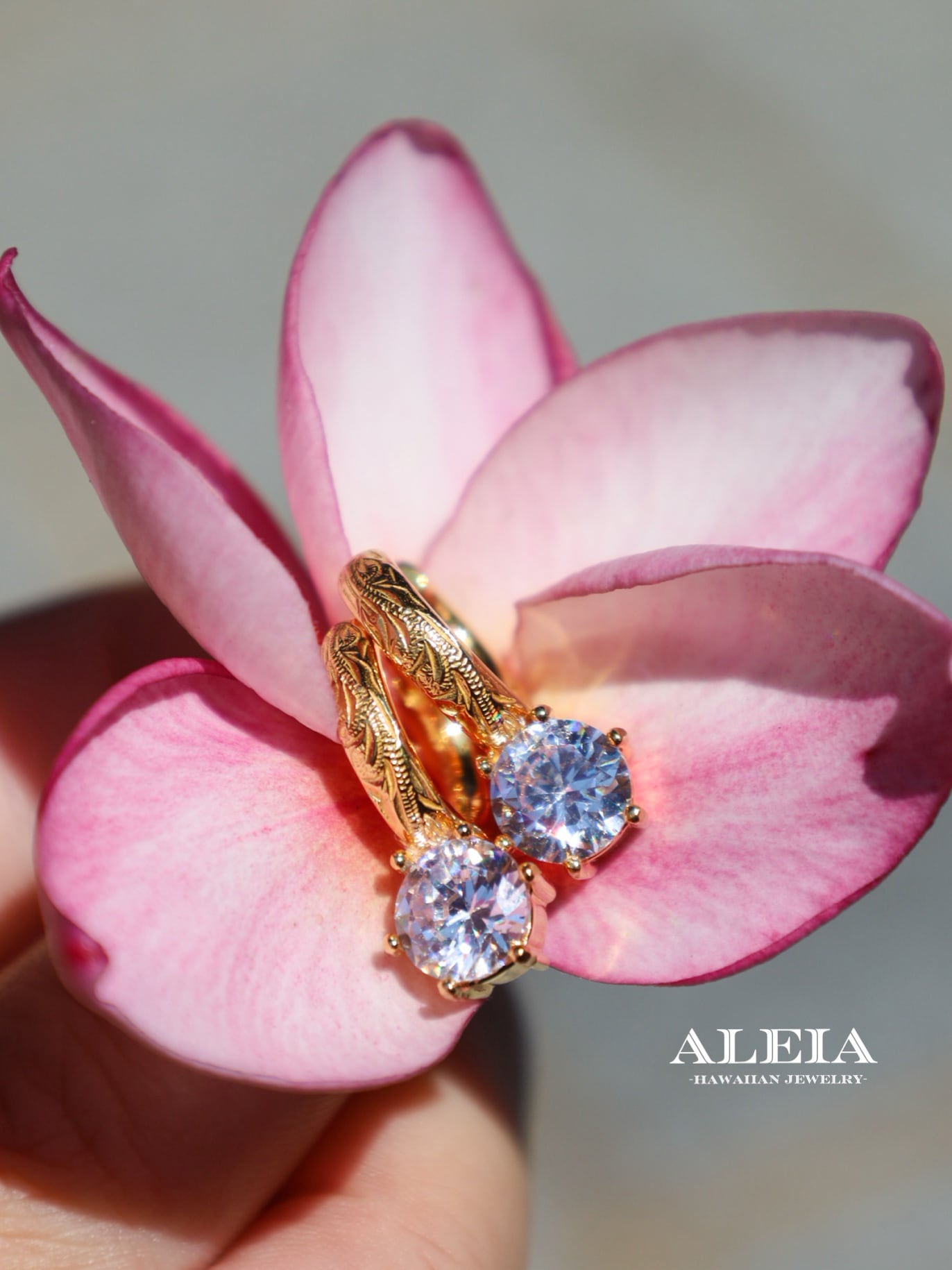 まるで南国の花びらに宿る朝露のように大粒のジルコニアが、太陽の光を受けて美しく輝くピアスが登場✨