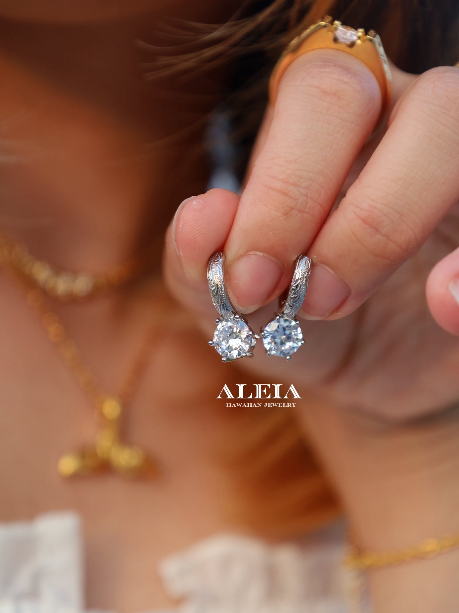 ✔ 高級感ある彫り模様入りフープ×大粒ジルコニア。