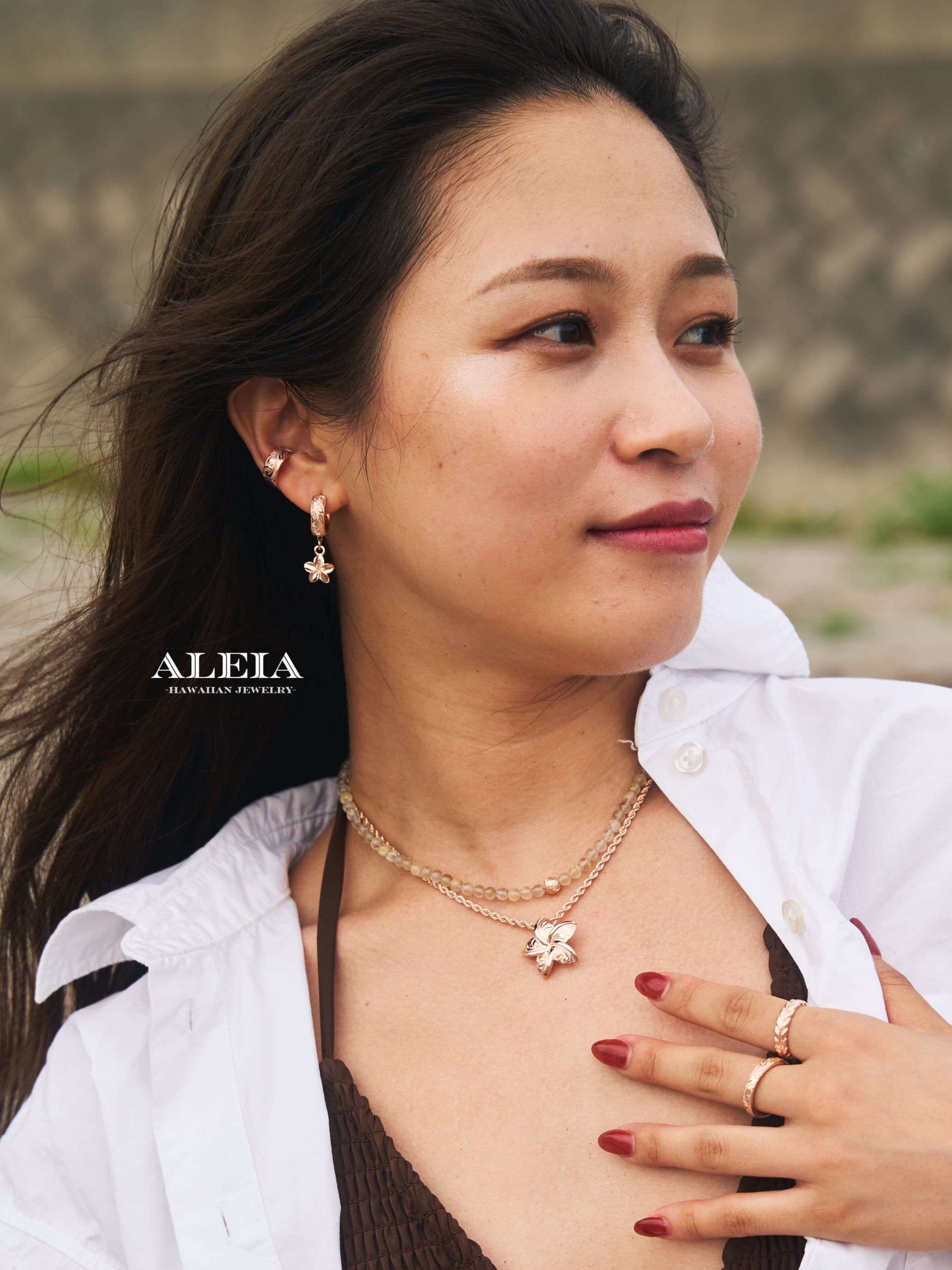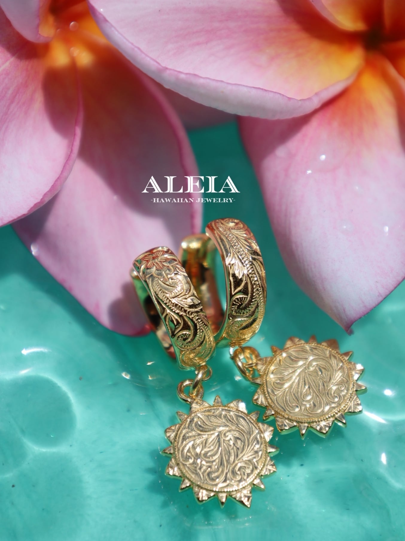 水面に映る光のように、動きに合わせて繊細に揺れるハワイアンチャーム。