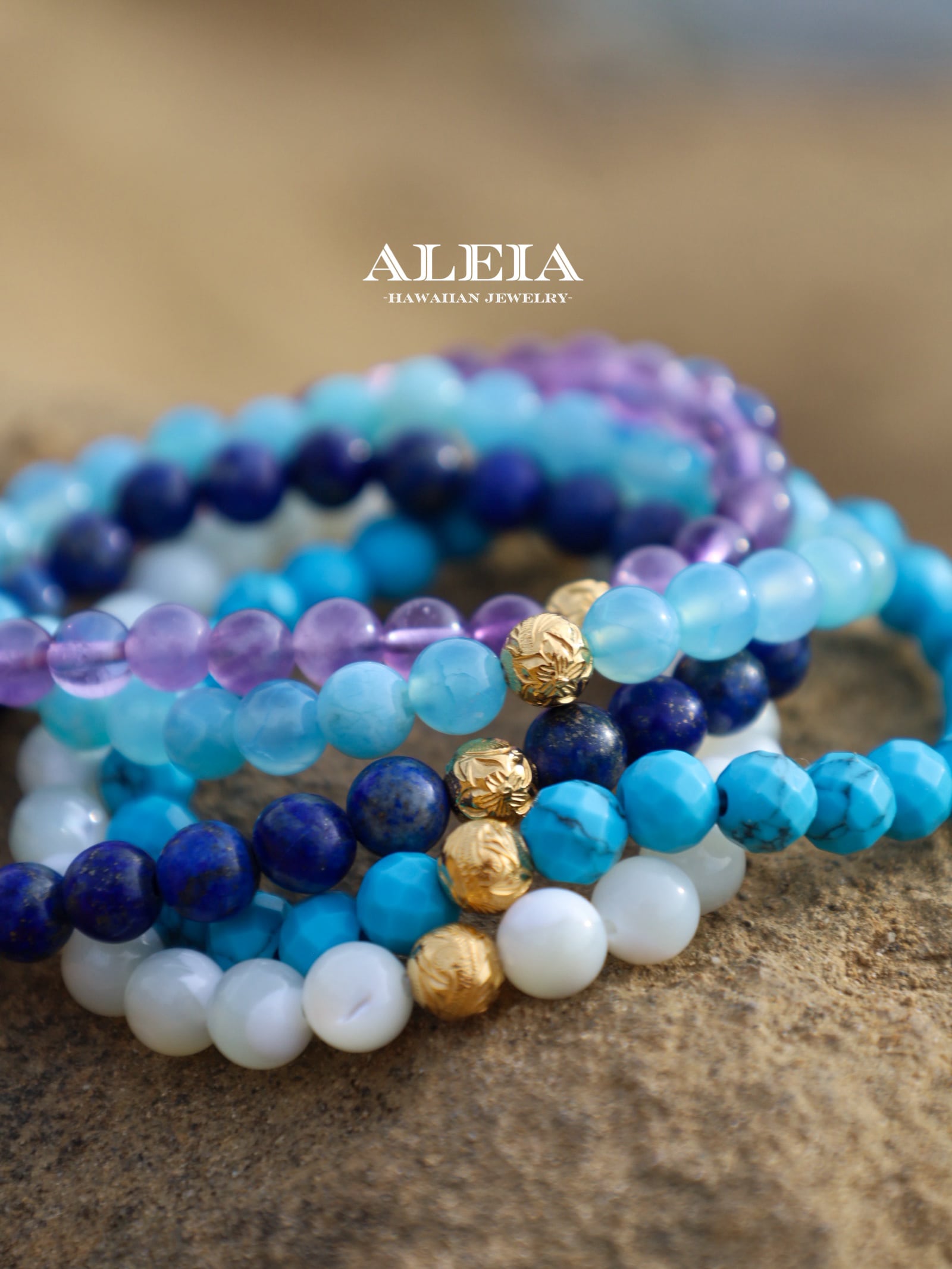 ターコイズ、ラピスラズリ、ラリマークウォーツ、マザーオブパール、ラベンダーアメジスト──