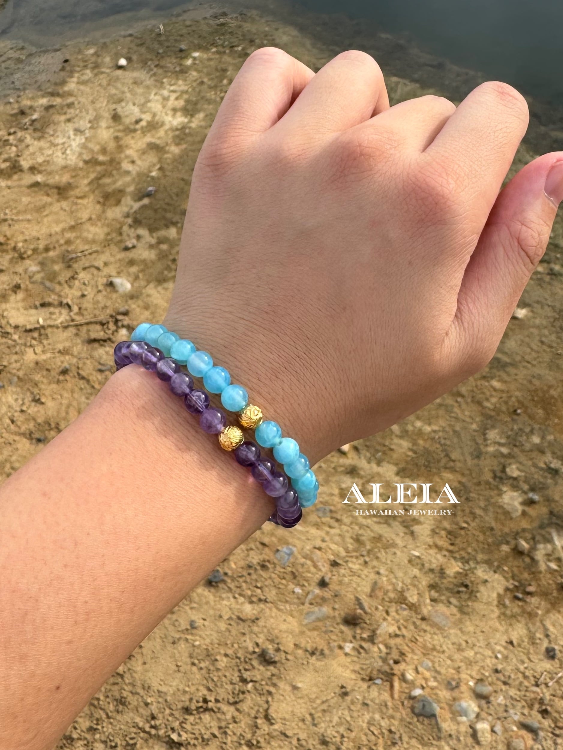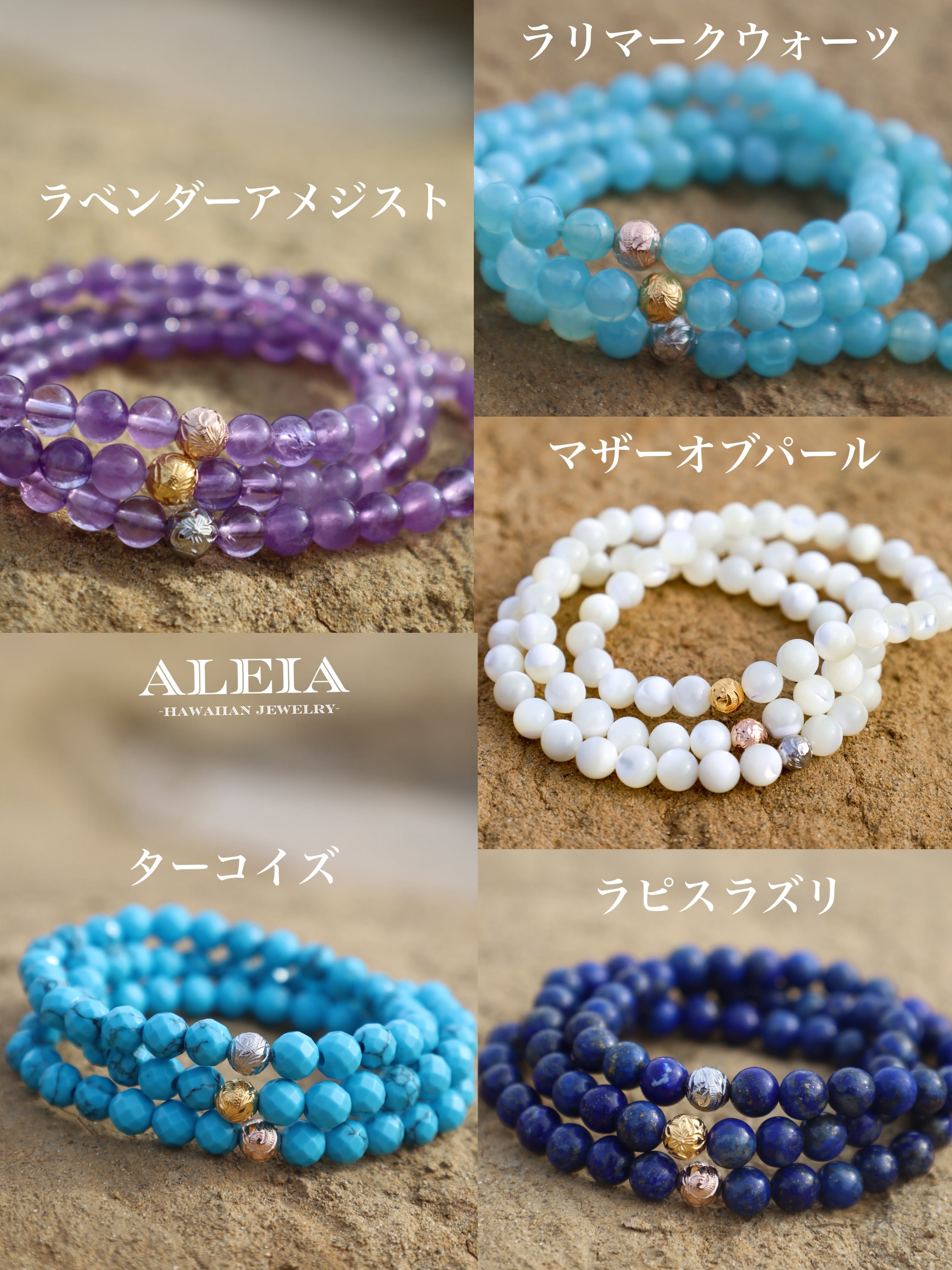 天然石とハワイアンビーズを組み合わせたナチュラルブレスレット。