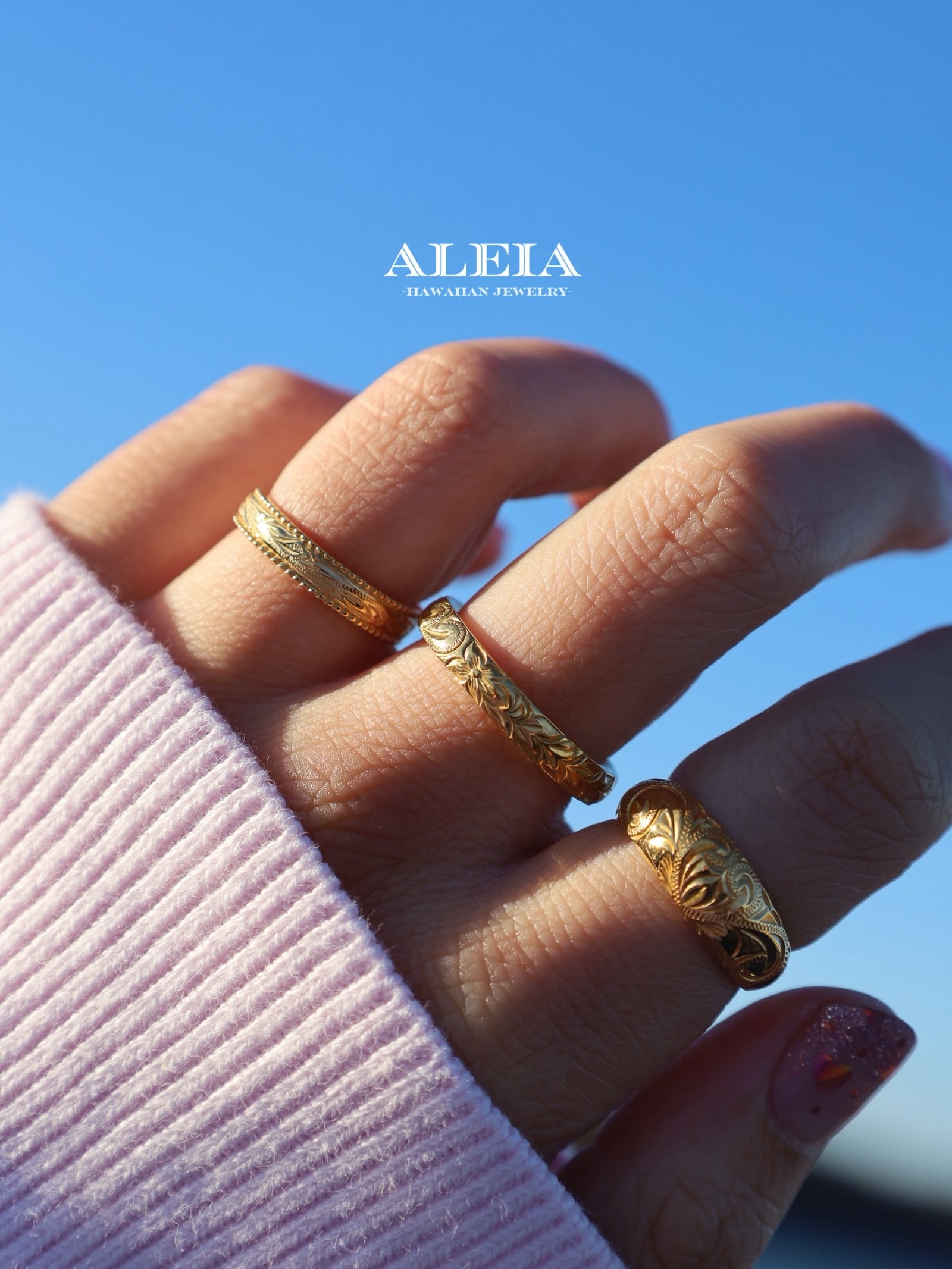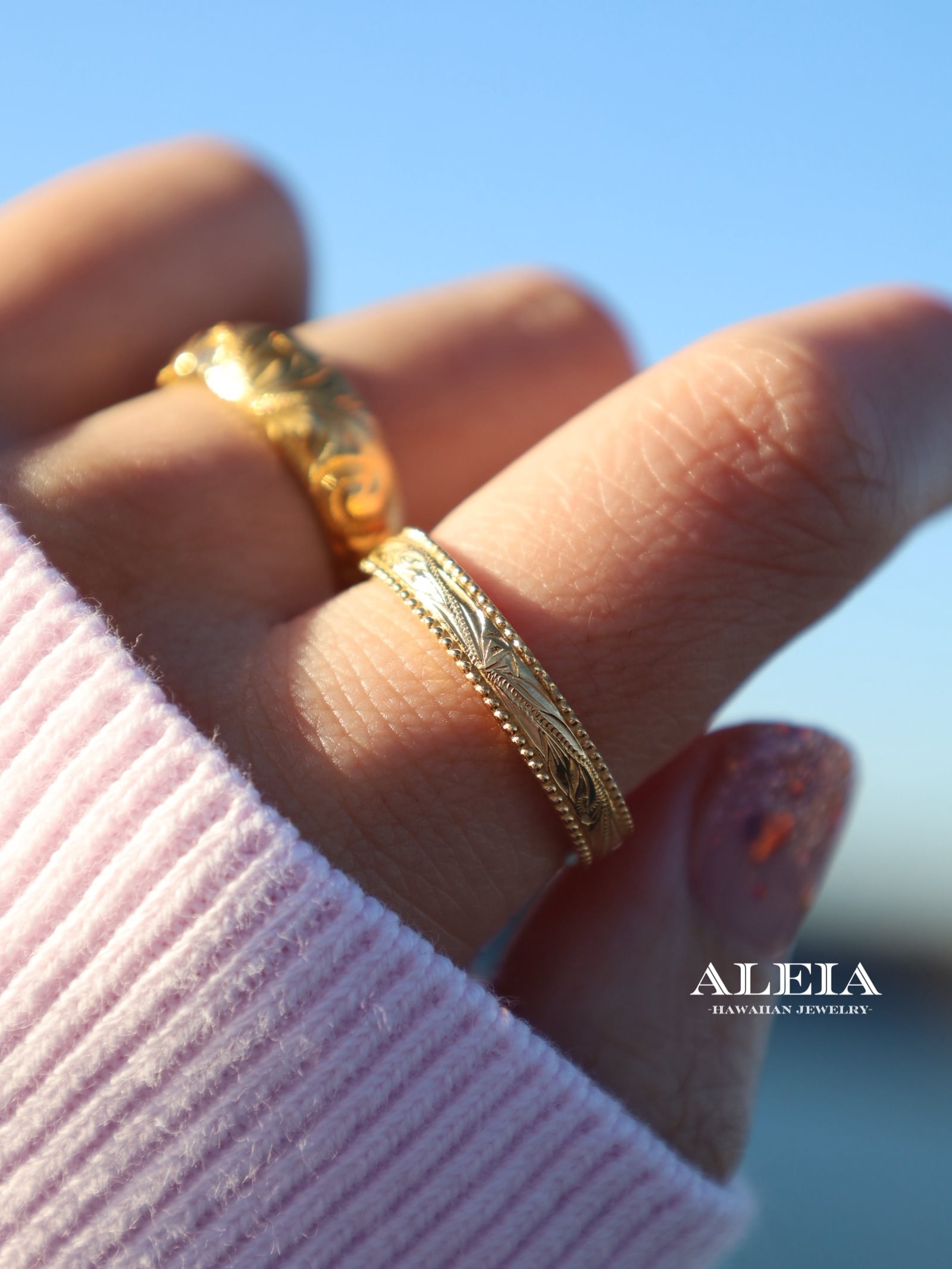 【Xmas限定ギフト】《刻印無料》ペア2点セットscroll ring [316L]ハワイアンジュエリー