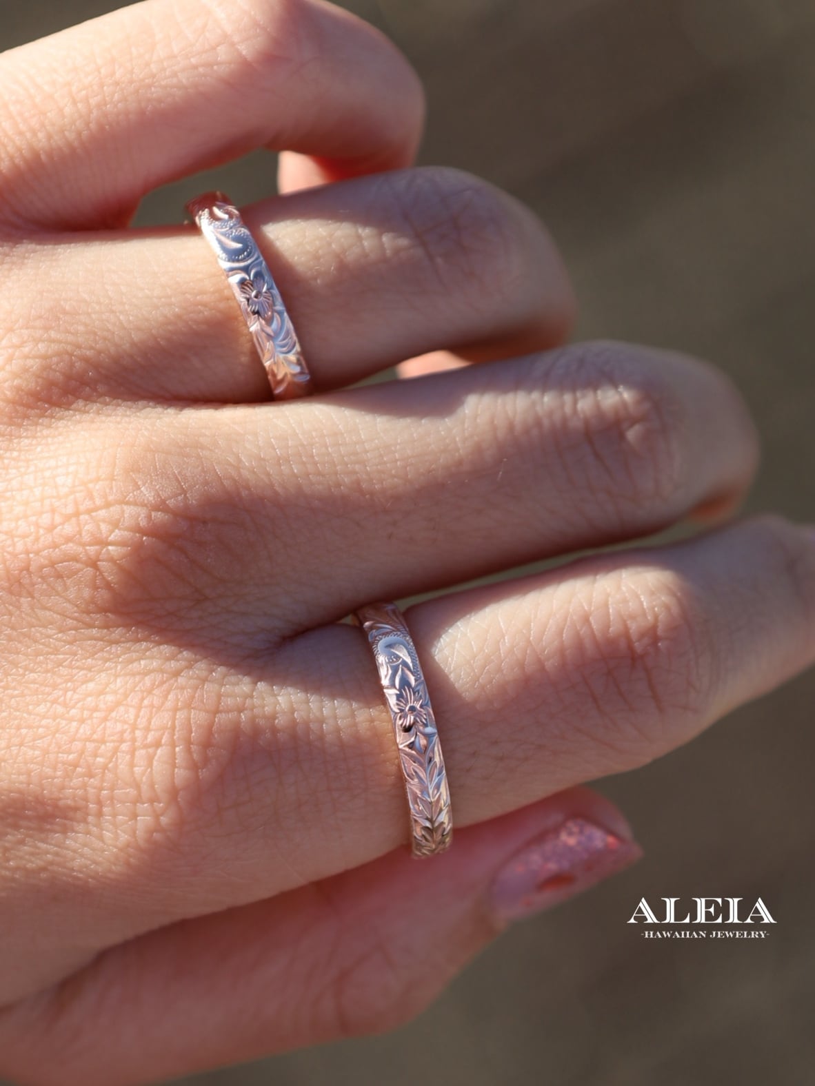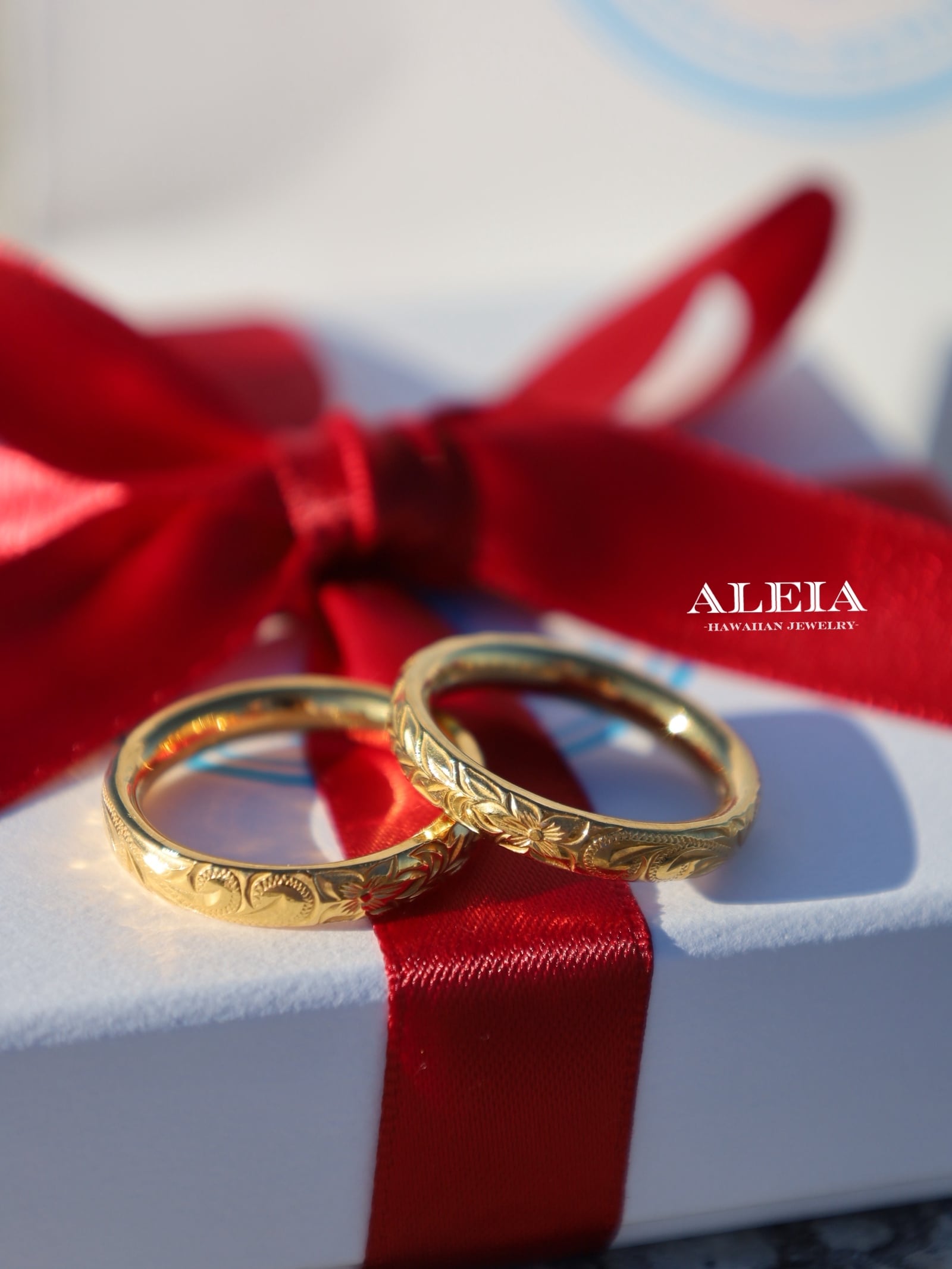 【Xmas限定ギフト】《刻印無料》4mm Hawaiian Ring ペア2点セット[316L]ハワイアンジュエリー